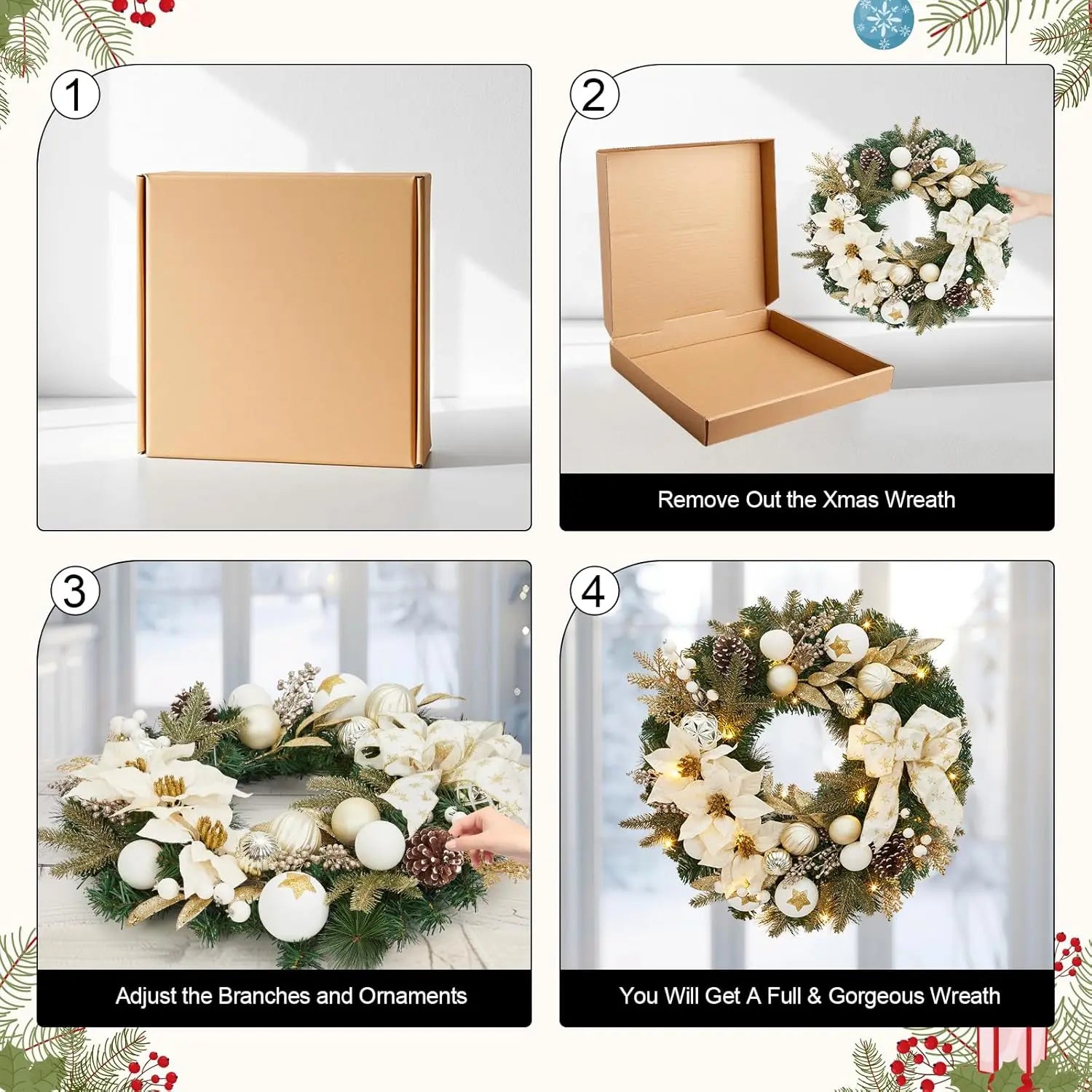 - PVC construction keeps the wreath lightweight, durable, and easy to clean, preserving color and shape for year‑after‑year display, while moisture resistance helps in moderate indoor environments.