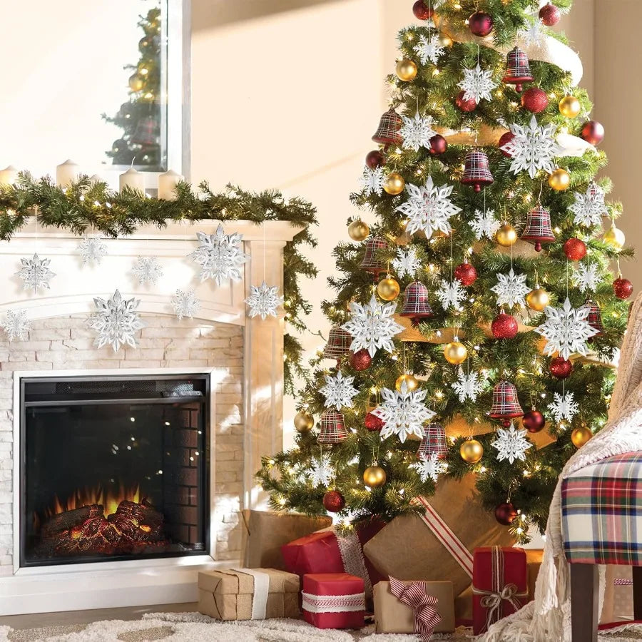 - 24-piece set of premium paper snowflakes that unfold into captivating 3D shapes, delivering a layered, dimensional look that elevates your entryway, mantle, or party backdrop.