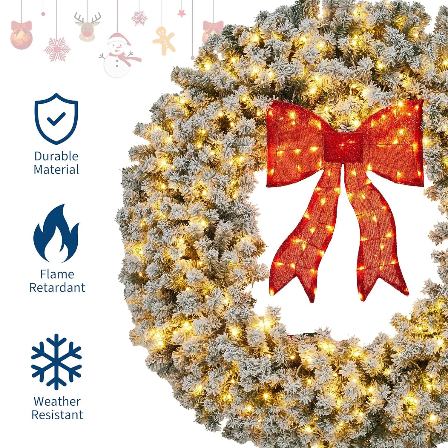 48in 60in Large Flocked Artificial Pre-Lit Fir Christmas Wreath Holiday Accent Decoration for Door, Mantel