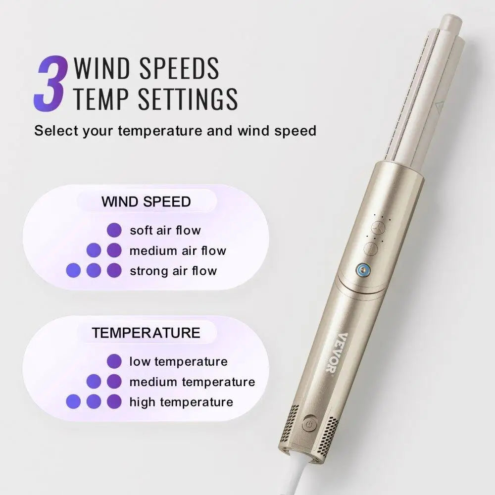 Smart Temperature and Airspeed Control: Our curling iron features 3 temperature settings and 3 airflow speed settings, you can adjust according to different hair types and styling needs, ensuring perfect results from gentle waves to strong curls.