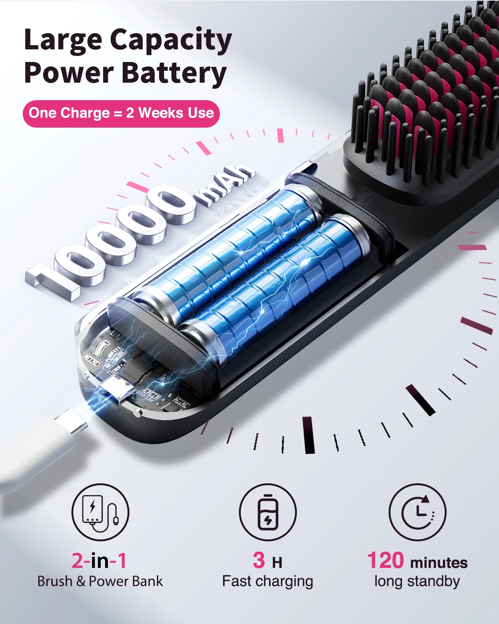 Cordless 2-in-1 Straight Hair Comb & Curler 10000mAh Battery Negative Ion USB Charging 30s Heat Up Travel-Friendly Styling Brush
