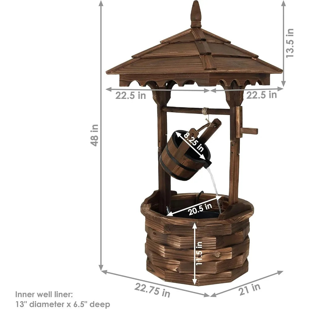 Electric Water Fountain - Outdoor 48-Inch Old-Fashioned Wooden Wishing Well Garden Fountain - for Garden, Patio, Decks