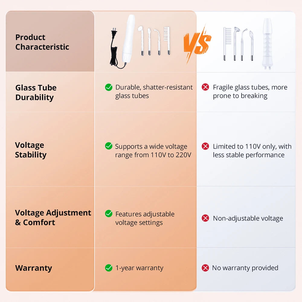 What sets our High Frequency Facial Machine apart from others in the market is its adaptability and ease of use. The ergonomically designed body fits comfortably in your hand, allowing for precise application to targeted areas. Whether you're looking to diminish acne, age spots, or fine lines, this versatile beauty device meets all your skincare needs.