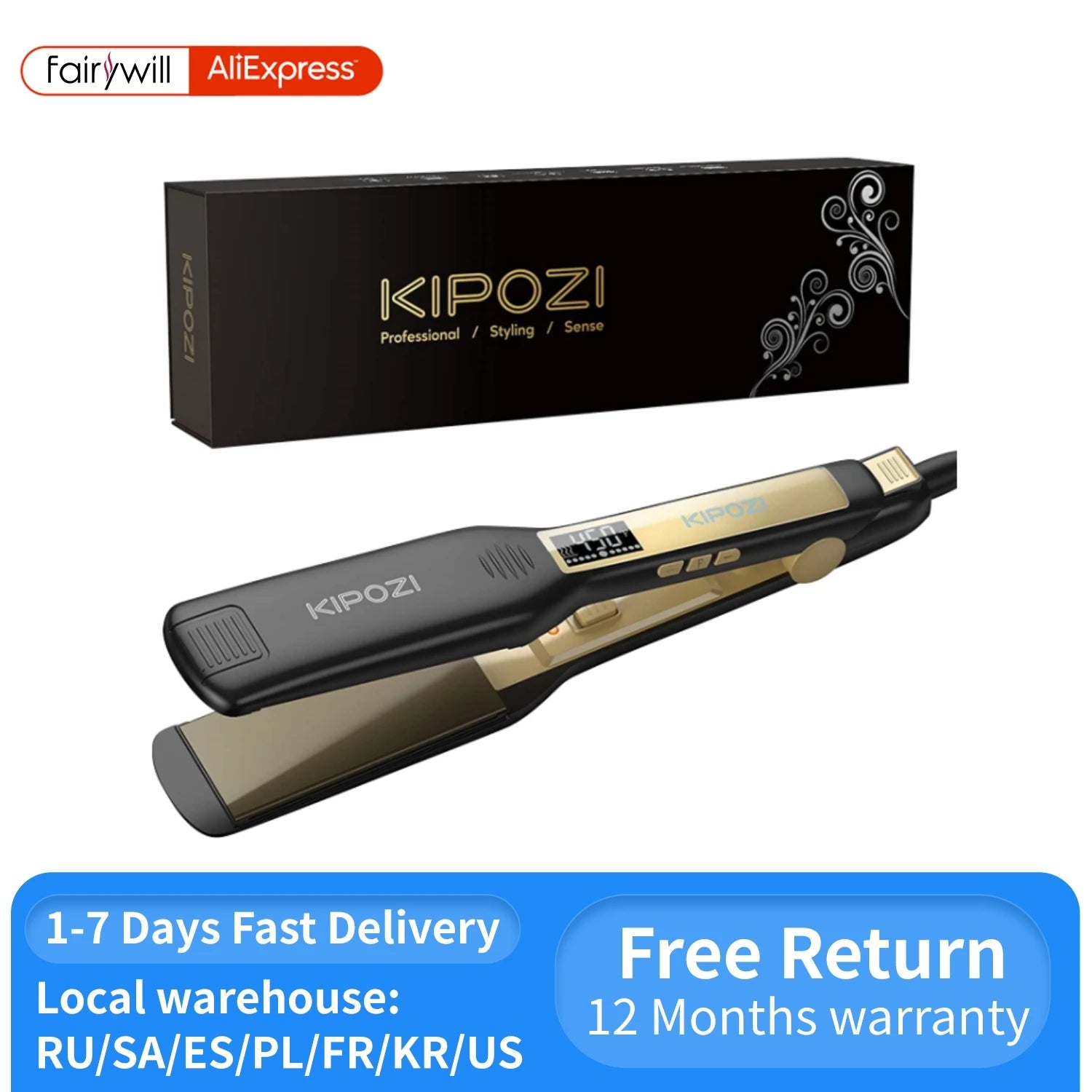 KIPOZI Professional Hair Straightener Titanium Flat Iron with Digital LCD Display Dual Voltage Instant Heating Curling Iron