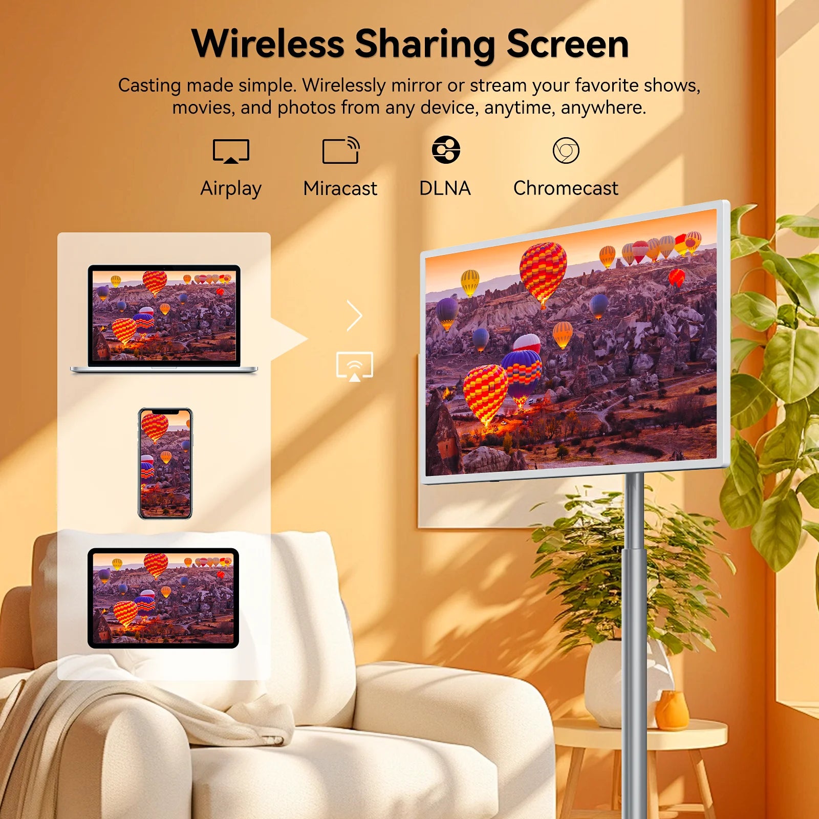 Portable TV 32"4K on Wheels,Smart Wireless Portable Monitor with Touch Screen,Android System,Built in Battery and Remote Control