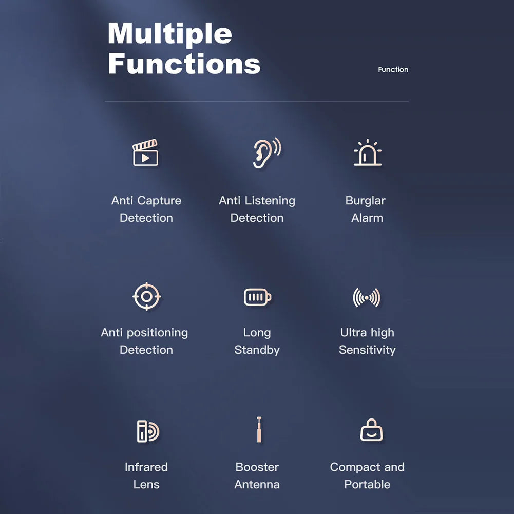 - Wireless, portable detector design enables quick, discreet scans without cables or noise, so you can protect privacy while moving through hallways, hotel rooms, or offices.